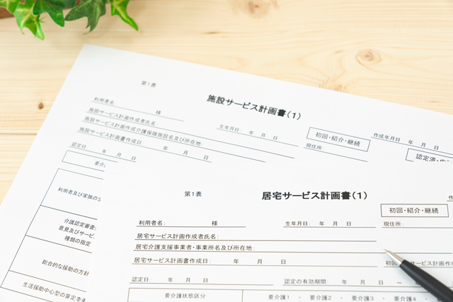 ケアプランとは、ケアマネジャーがご利用者さまの心身の状況等を把握して作成する介護サービス計画表のことを示します。1ヶ月ごとのサービスに訪問する日数や、時間帯、生活援助・身体介護などの区分を介護度に応じて設定するもので、施設利用、福祉用具も含め、利用者さまとの相談により決定していただくことになります。
